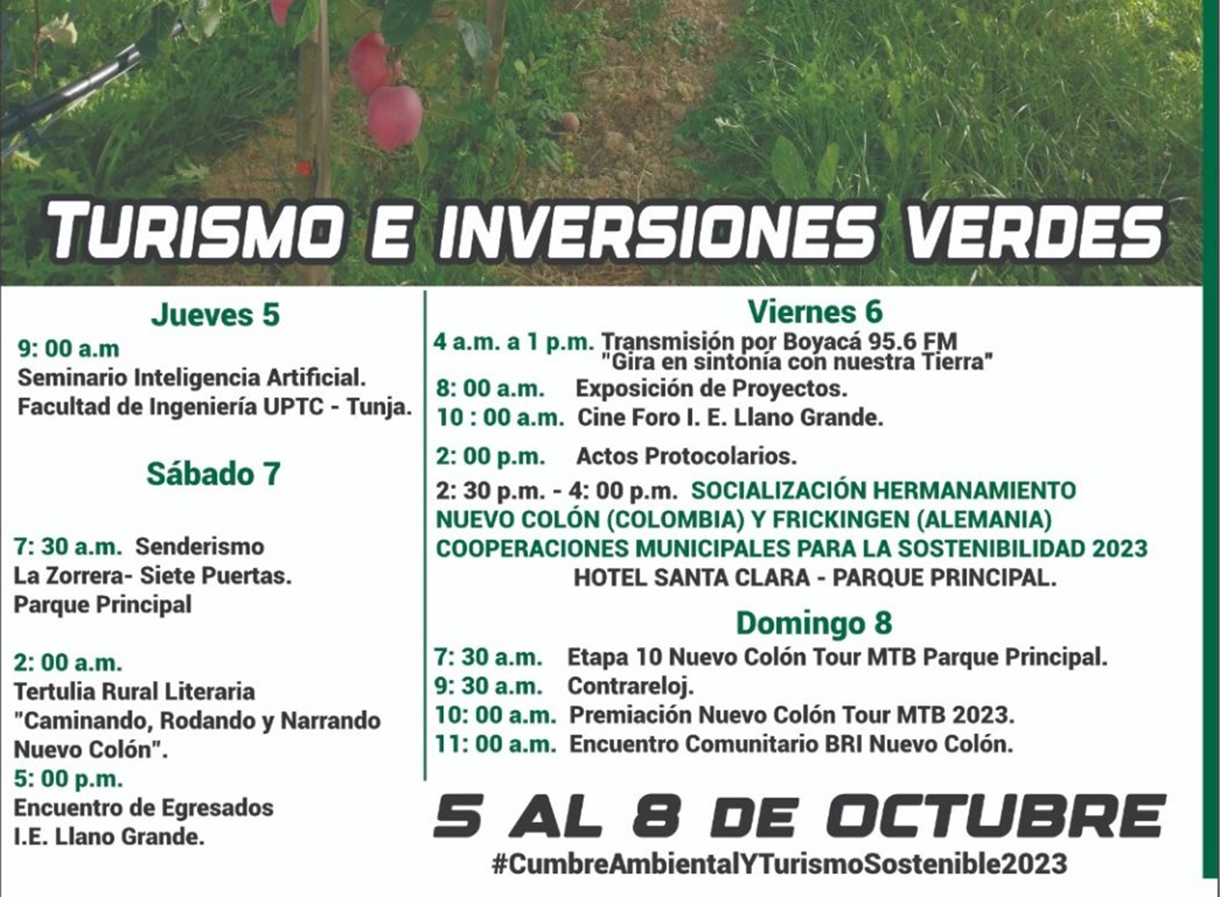 La Alcaldía de Nuevo Colón junto al colegio amigo del turismo, CAT Institución Educativa Llano Grande, celebran la III Cumbre Ambiental y Turismo Sostenible, bajo el lema ‘Turismo e inversiones verdes’, establecido como tema del Día Mundial del Turismo 2023.
