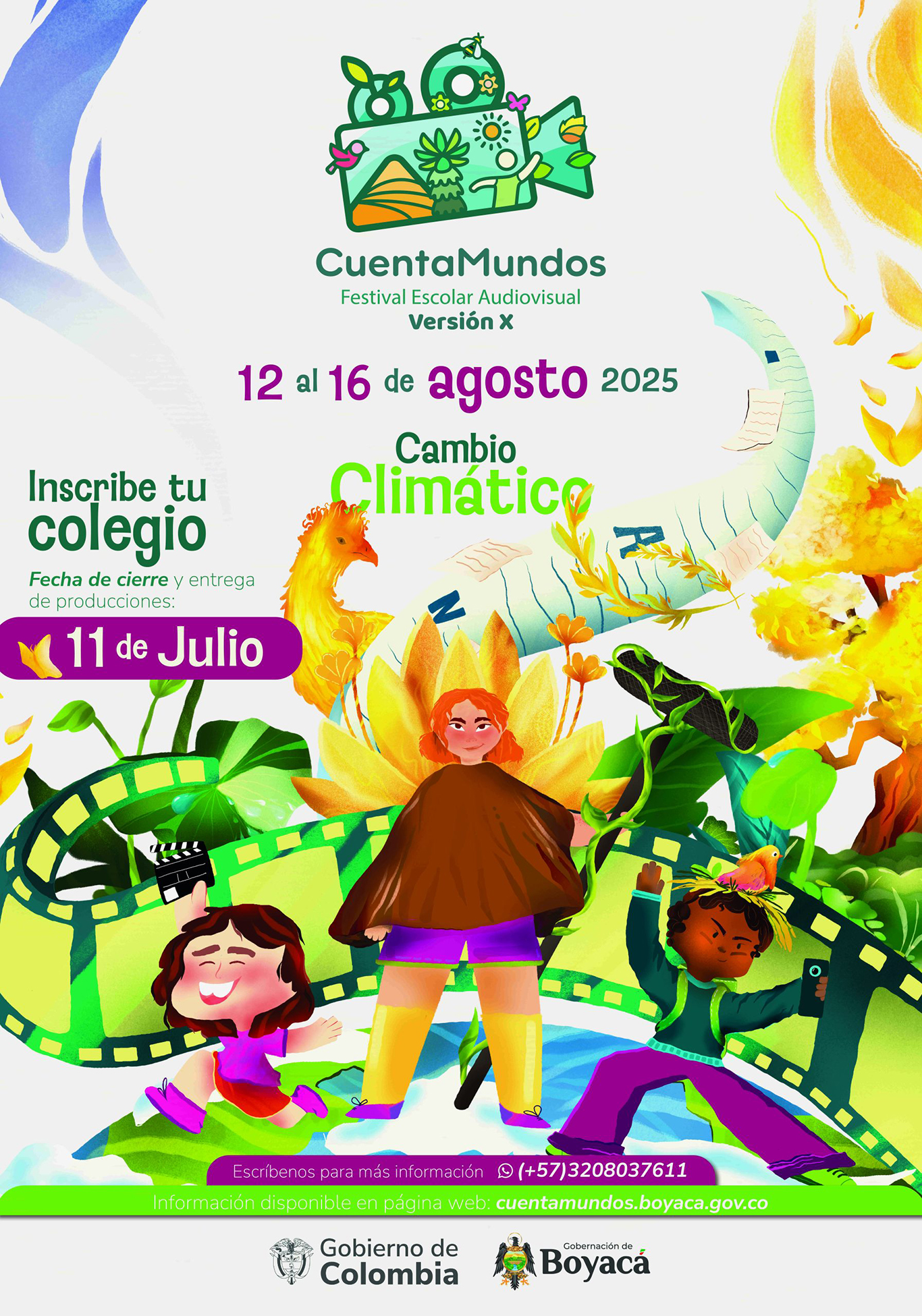 La Secretaría de Educación de Boyacá y el comité organizador del Festival Escolar Audiovisual anunciaron que, a partir de este 10 de abril, inicia el proceso de inscripción para el Festival Escolar Audiovisual ‘CuentaMundos’ 2025.