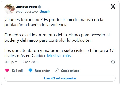 «La máxima persecución mundial contra este grupo narcoterrorista»: Petro tras atentado en el Cauca